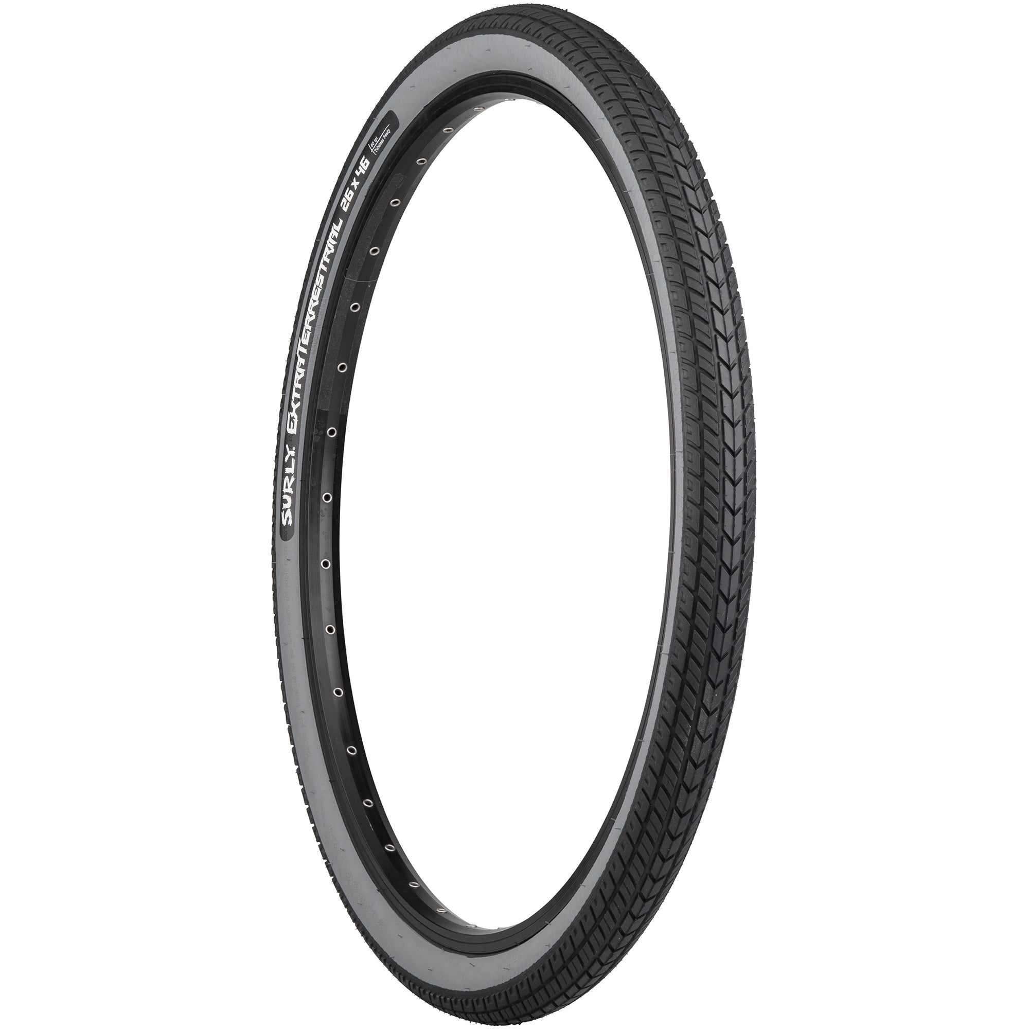 When you’re out on a ride the last thing you want is to be limited by your tires in any way. Our ExtraTerrestrial Tires were designed to let you ride without limits by simply following the only tenets we have for tire design: they’re high volume and they kick ass. The ExtraTerrestrial tire was meant to serve as a heavy-duty off-road touring tire that shines on hardpack surfaces. It uses a nylon breaker in the sidewalls for cut protection, a molded pattern for anti-cut propagation, and a Kevlar cap under the tread to protect against flats. The ET Tire uses a distinctly directional tread pattern and its width yields more traction than you might expect from a tire with such little rolling resistance. The tread is low profile with a file tread in between tread blocks. The ExtraTerrestrial tire has enough width and traction for the soft stuff and won’t bog you down on smooth or hard surfaces.